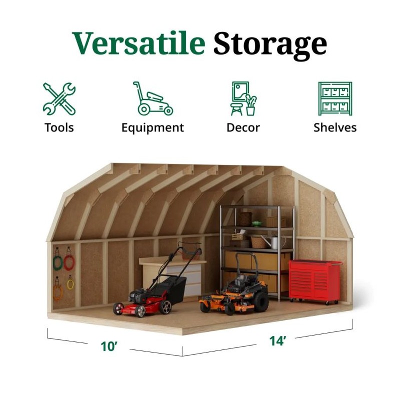 Enhance your outdoor storage capabilities with the Value Gambrel Barn featuring 4-ft Sidewalls. This shed boasts a spacious interior with a classic gambrel roof that provides ample overhead storage space for a variety of items, from gardening supplies to recreational gear. The wide double doors allow for easy entry and exit, making it convenient to access your belongings. Built with sturdy 2x4 construction and resilient LP SmartSide siding, this barn is designed to withstand the elements while adding a charming touch to your yard. Choose the Value Gambrel Barn for a stylish, functional, and durable storage solution.