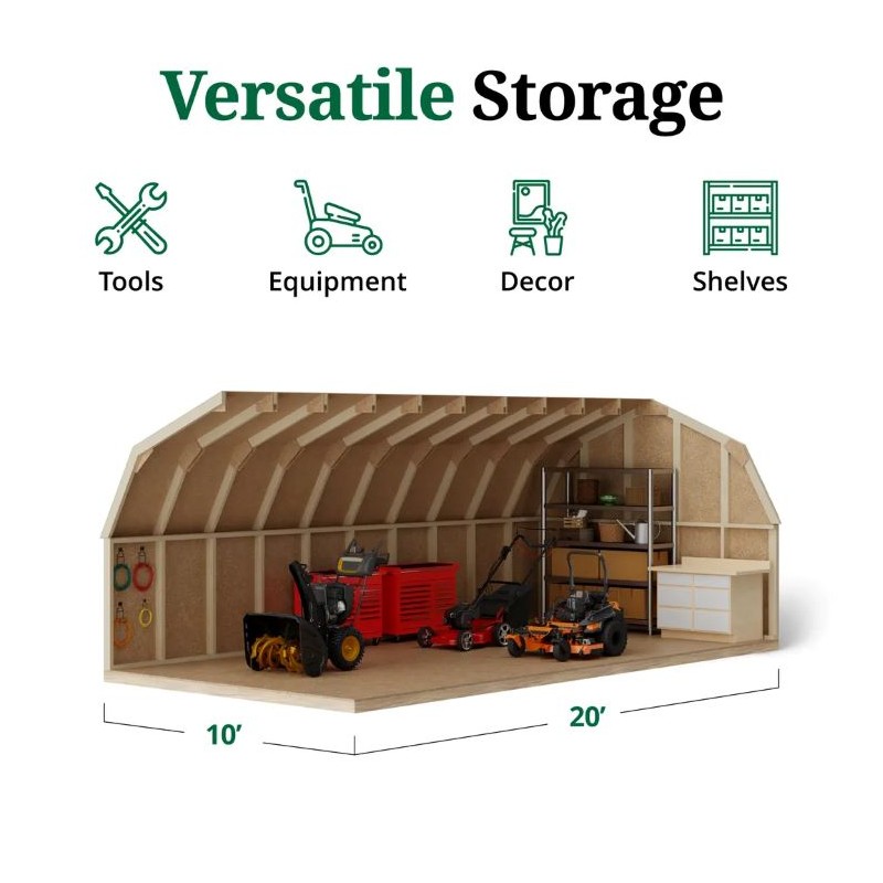 The Value Gambrel Barn with 4-ft Sidewalls is more than just a storage shed; it's a timeless addition to your outdoor space. Featuring a classic gambrel roof design, this barn maximizes vertical storage for everything from lawn equipment to holiday decorations. The wide double doors ensure easy access, while the sturdy 2x4 construction and LP SmartSide siding guarantee durability against the elements. Whether you're organizing your garden tools or storing seasonal items, this barn brings both style and practicality to your yard, making it an essential storage solution.