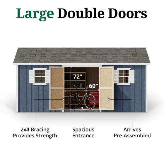 *Features double doors that come pre-assembled, complete with a secure locking handle and 2x4 support for added stability.