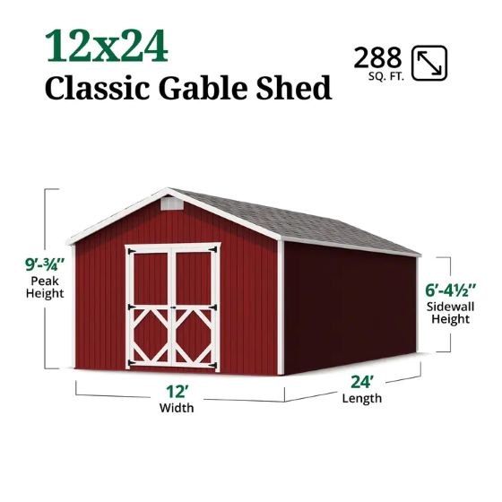 Little Cottage Co. Pre-Cut 12x24 Classic Gable Wood Shed Kit - (12x24 CGS-PC)