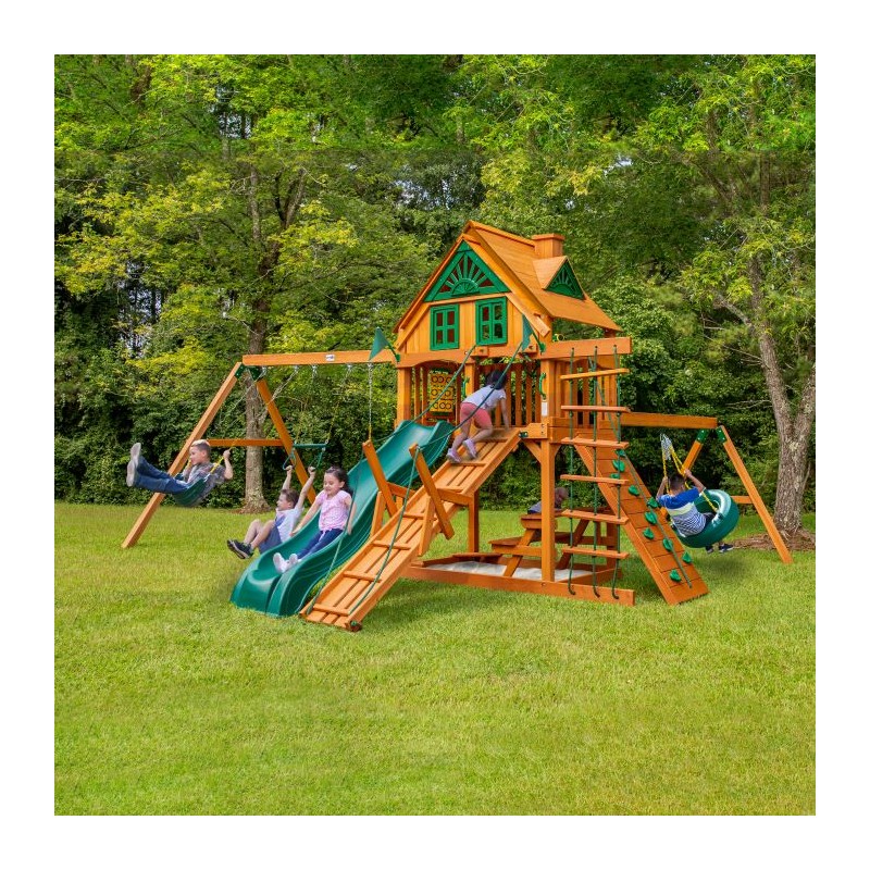 Gorilla Pioneer Peak Treehouse Cedar Wood Swing Set Kit w/ Amber Posts - Amber (01-0055-AP)