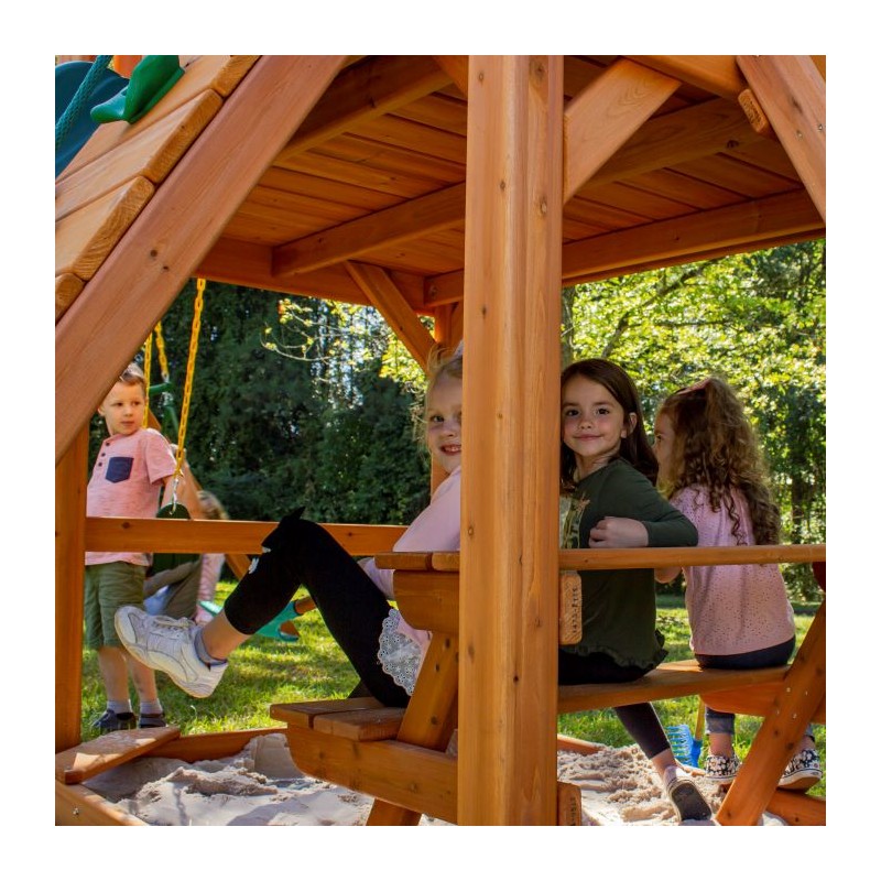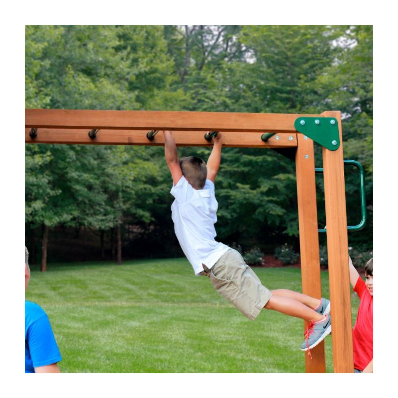 This cedar wood playset has all the excitement kids crave and the safety features parents demand.