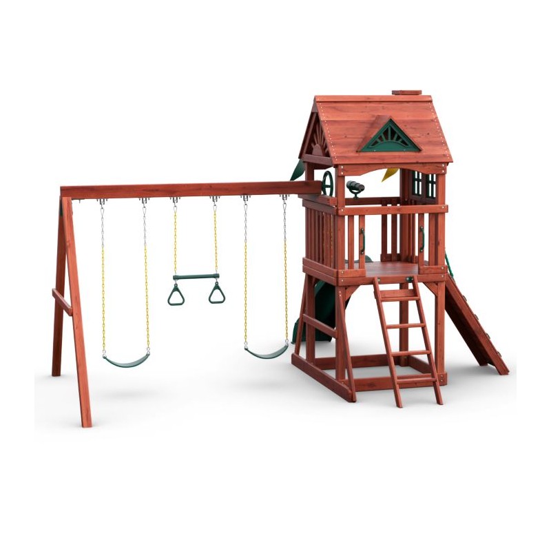 Gorilla Treasure Trove II Cedar Wood Swing Set w/ Standard Wood Roof (01-1034-AP)